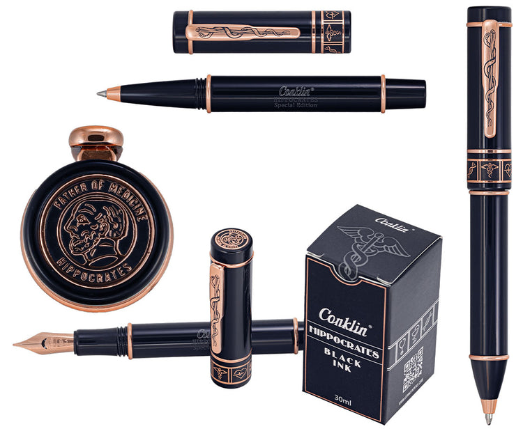 Renowned as the "Father of Western Medicine," Hippocrates, was born in 460 BCE in Kos, Greece, leaving an enduring legacy that continues to shape contemporary healthcare practices to this day. The Conklin Hippocrates family of writing instruments make the perfect gift for anyone just entering the profession, or as an elegant, everyday tool for even a seasoned practitioner.