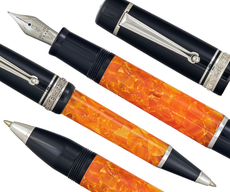 Delta introduced a bold new look for luxury writing instruments in 1998. It was named "Dolcevita" for the Italian "sweet life" that everyone dreams about. They hand-made special Terracotta Orange and Black resins and accented the instruments with hand-cast sterling silver. The result was stunning to look at and raised the bar for luxury writing instruments forever.