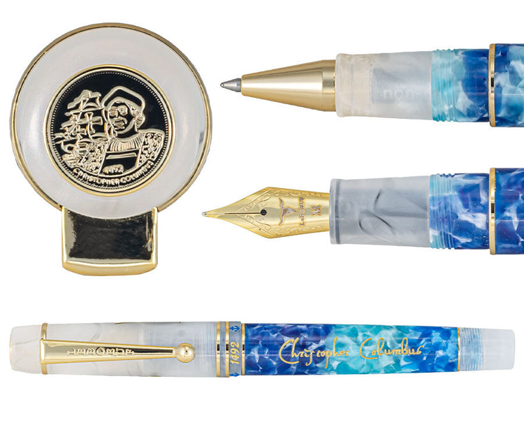 The LeBoeuf Pen Company is proud to honor explorer Christopher Columbus with this unique Limited Edition fountain pen and rollerball commemorating his historic voyage in 1492.