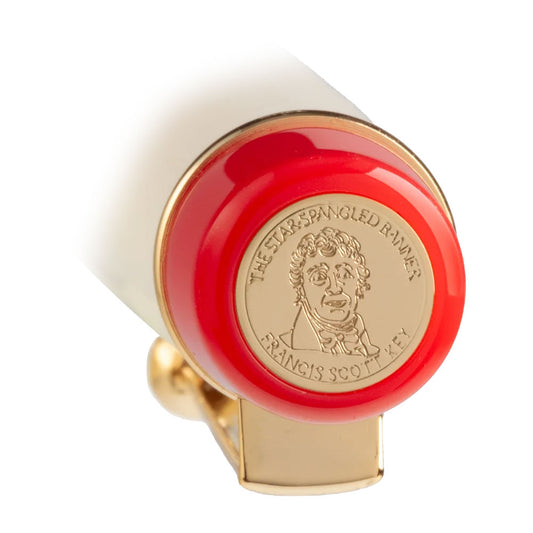 The Francis Scott Key “Star –Spangled Banner” Limited Edition is produced with a unique Vintage Ivory acrylic. Each pen barrel has been carefully polished and features red and blue acrylic end caps. Francis Scott Key’s famous signature is engraved on each barrel. A gold commutative coin featuring Key’s portrait has been fitted on to the top of each cap. Red and blue alternating stars have been engraved onto each cap paying homage to The Star- Spangled Banner and enhancing the elegance of this special pen.