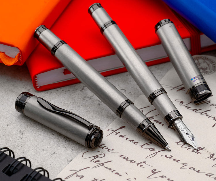 Every Innova Titanium fountain pen is crafted with meticulous attention to detail, beginning with a solid titanium body and precision-machined construction. A standout feature is a premium titanium grade 9 nib engraved with the Monteverde USA logo.