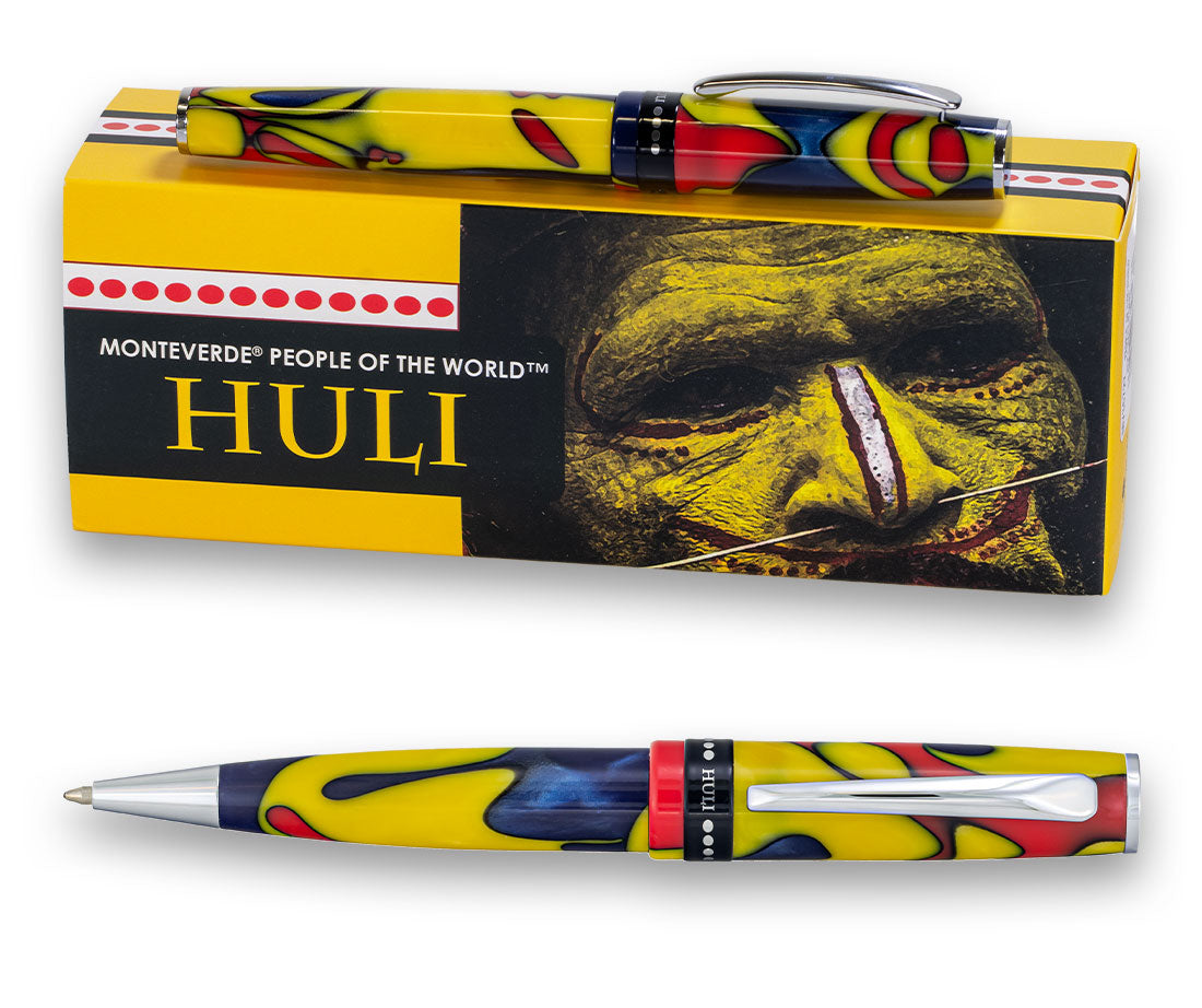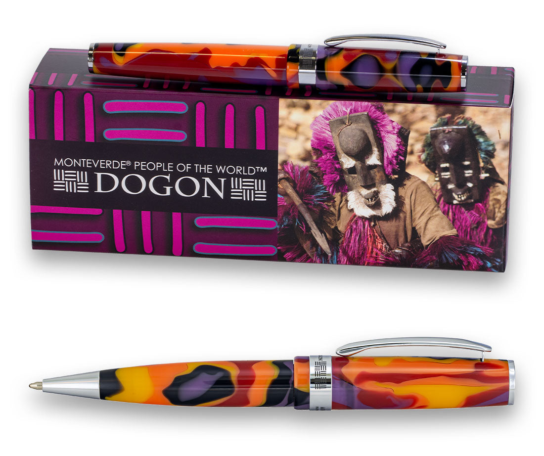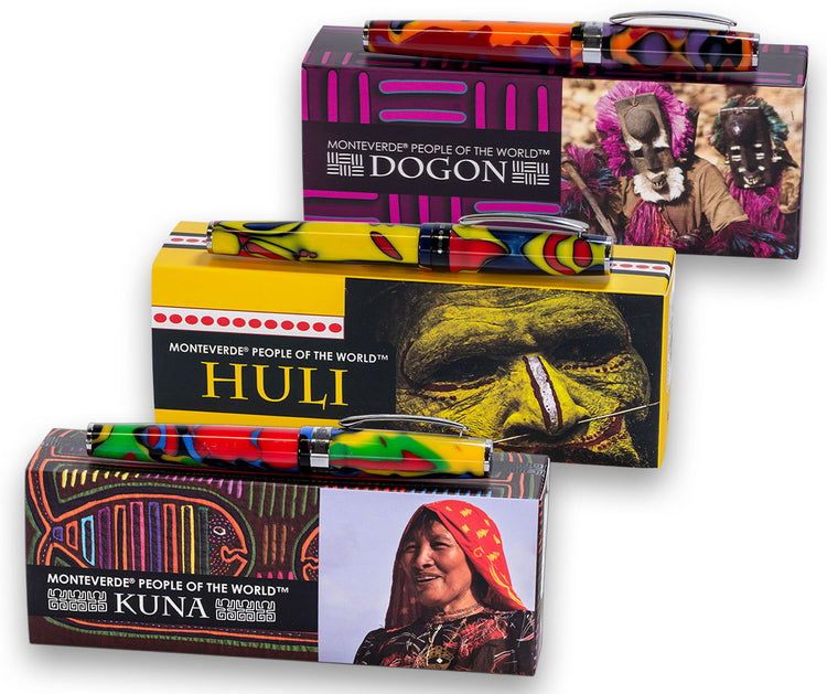 This pen collection was created to bring attention to the Dogon, Kuna and Huli cultures, traditions, and sacred beliefs and raise awareness about the importance of the People of the World. The Monteverde People of the World collection is available in fountain pen and ballpoint modes. The fountain pen is equipped with a stainless steel JoWo #6 nib engraved with the Monteverde USA® logo and fills via a standard cartridge or converter (included). The nib is available in extra fine, fine, medium, broad and Omniflex. The twist-action ballpoint pen accepts standard Parker Style refill. Each Monteverde USA pen features a lifetime warranty and is sold in a luxurious gift box.
