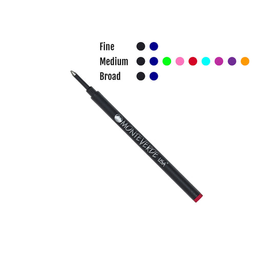 The Monteverde brand features the R4688 which offers three different points sizes (rare in the rollerball world). This refill was specifically designed to replace the Schmidt 888 found in many rollerball pens. The Monteverde Spring Loaded Fineliner offers a "felt tip" point and the Monteverde Wide Writer which features medium and broads and fits especially well in Pelikan rollerball pens.