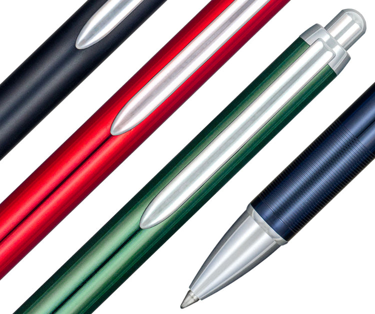 Schmidt Technology of Germany produces these delightful one-piece rollerballs to inexpensively introduce consumers to their capless ink technology. This click-top pen uses Schmidt's ceramic ball technology; smooth writing doesn't get any better than this. Oh, wait, it does! Schmidt just introduced this rollerball refill in additional colors and point sizes. Choose your refill in black, blue, green or red which are all offered in fine. The black and blue is now available in fine, medium or broad points. Be sure the point of the pen is retracted before pocketing. This ink will wick onto fabric if the point is exposed. A fine quality pen which also happens to laser engrave beautifully.