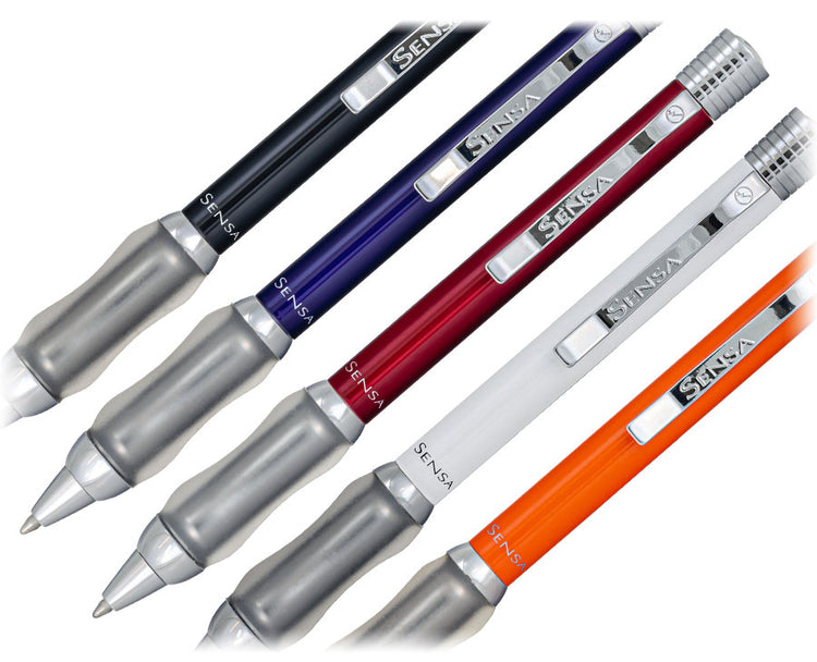 Sensa Pens were originally introduced in 1995 and then vanished about ten years later. We sold more Sensa pens during those ten years than any other single pen: period. That’s what a huge seller Sensa used to be. The patented grip section was a vastly treasured component and loved by thousands of consumers. The ergonomic Patented Plasmium ™ fluid gel grip was unique and obviously stress-relieving within minutes.
