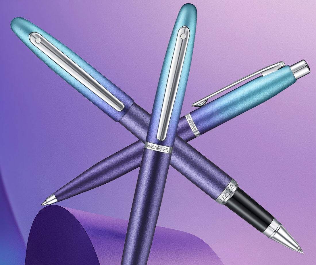 Designed for those who write boldly and live vividly, Expressions introduces a fresh, unapologetic look to the Sheaffer range. The collection features VFM and 100 Series fountain pens, rollerballs, and ballpoints in two modern gradient finishes—The VFM features Blue & Purple gradient and the 100 Series Blue & Pink gradient. Both have chrome-plated trims, durable brass bodies, and Sheaffer’s trusted writing performance. Each pen comes in a premium, plastic-free gift box made from FSC-certified paper.