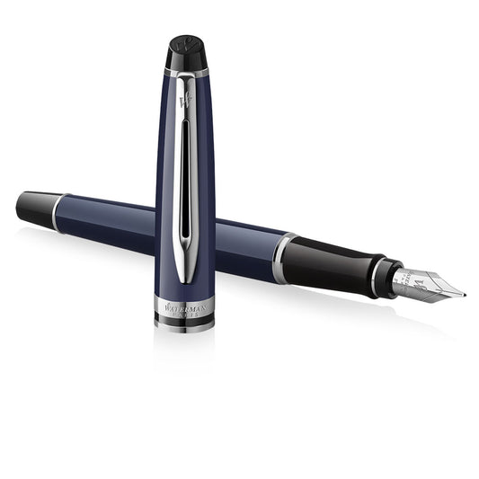 Waterman fountain pens are available in their historic Carene collection, as well as their Expert series in both in lacquer or in metallic. A limited edition L'Essence du Bleu is also still available with models from assorted collections. All Waterman Carene and Expert fountain pens are sold in fine and medium nibs. Some Waterman fountain pen models offer a medium nib point only. Waterman fountain pens feature both steel and gold nibs, depending on the model. They all accept Waterman ink cartridges or can be used with a converter and any fresh bottled ink.