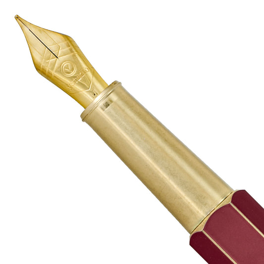 The “Classic Fountain Pen Series” is covered with a matte lacquer finish. Each of the six corners of the pen are finely polished to draw attention to its shining gold brass lines.
