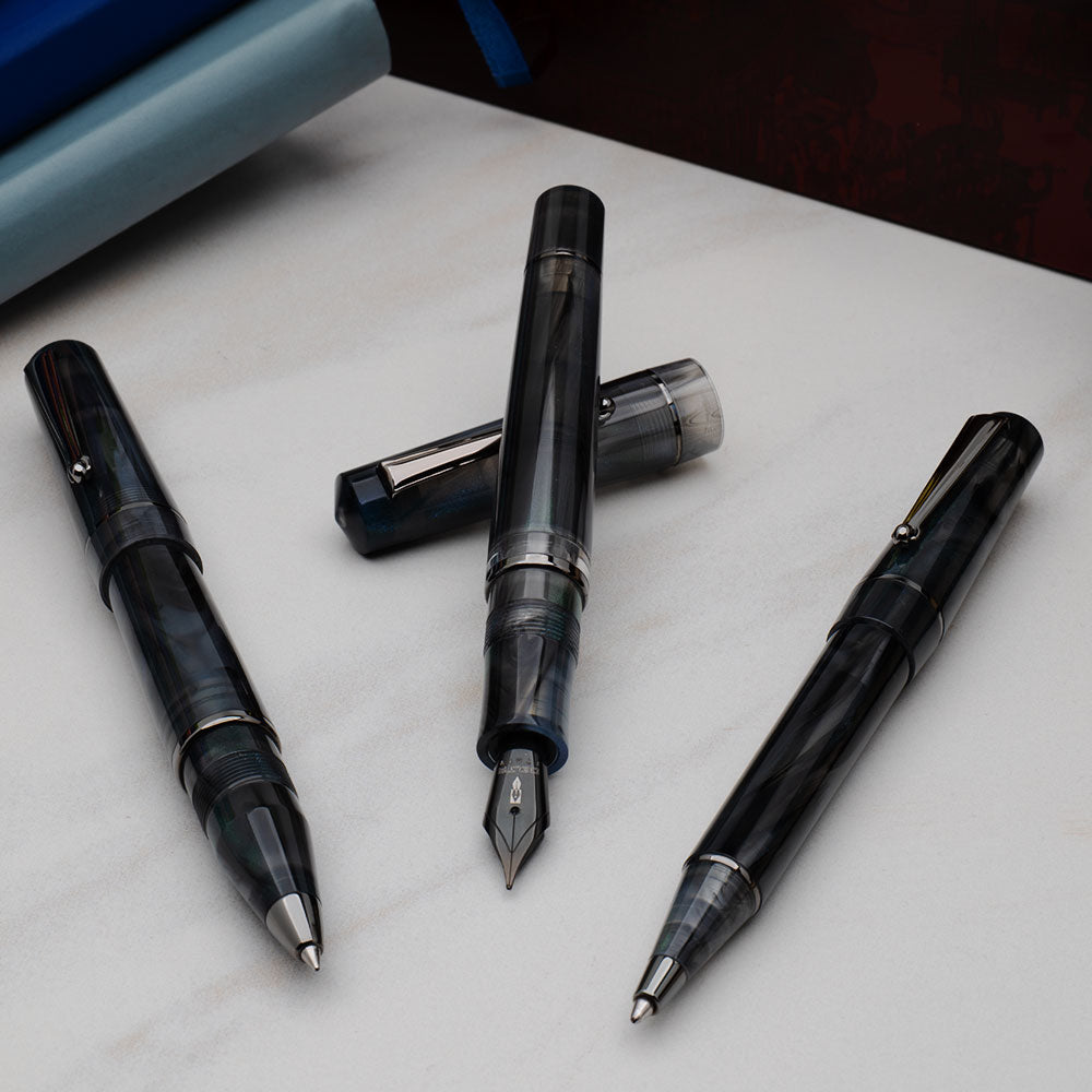 These three resin blends are unique; no two are alike. The rollerball is a liquid ink joy. Select refills in three points sizes and a rainbow of colors.