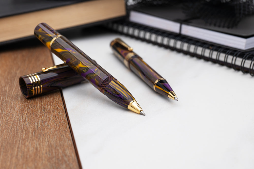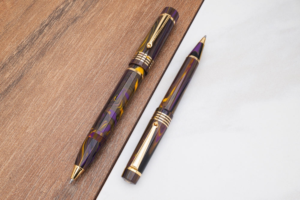 Select from these two unique resin mixtures in rich Iris purple or bright Marigold yellows and greens. The ballpoint is a twist-top and ready to write. Select extra refills in three points sizes and a rainbow of colors.