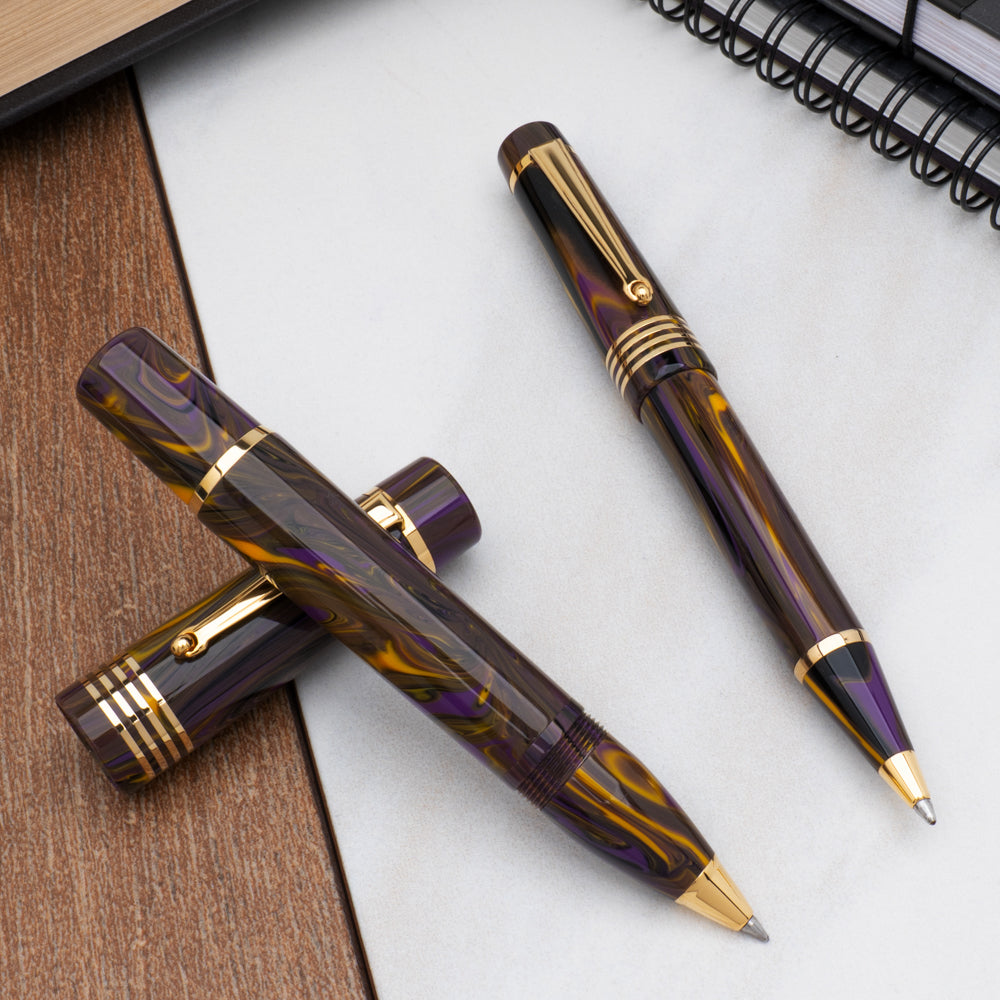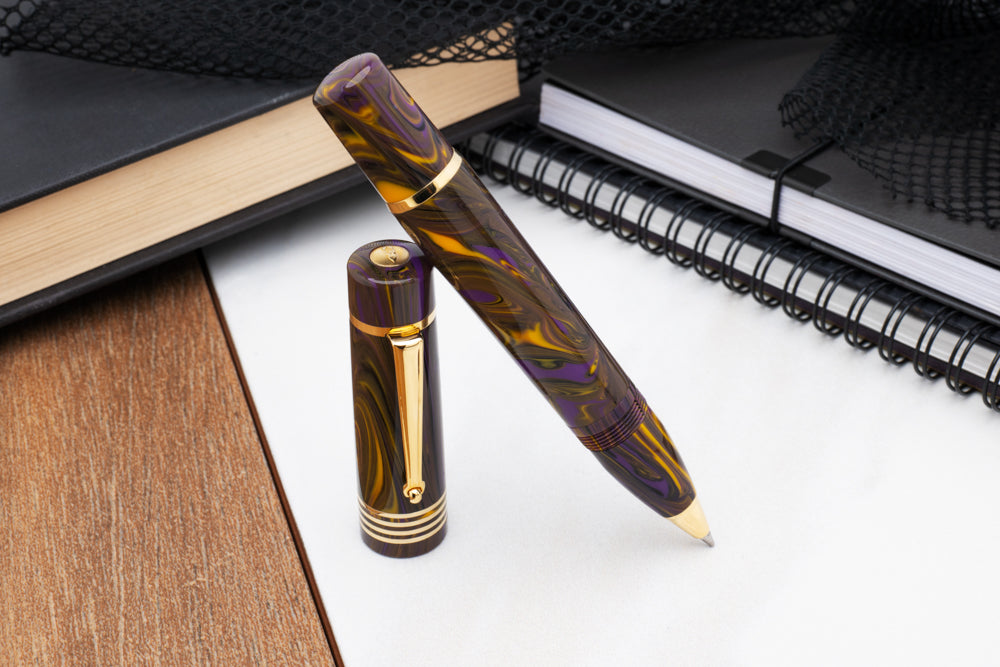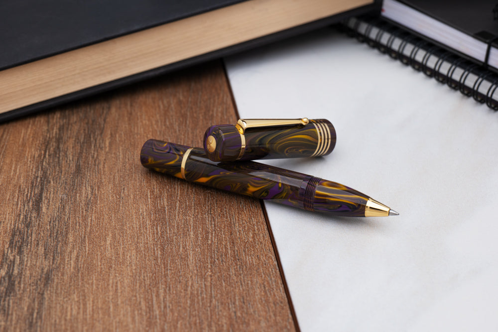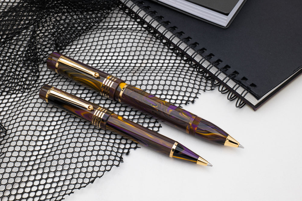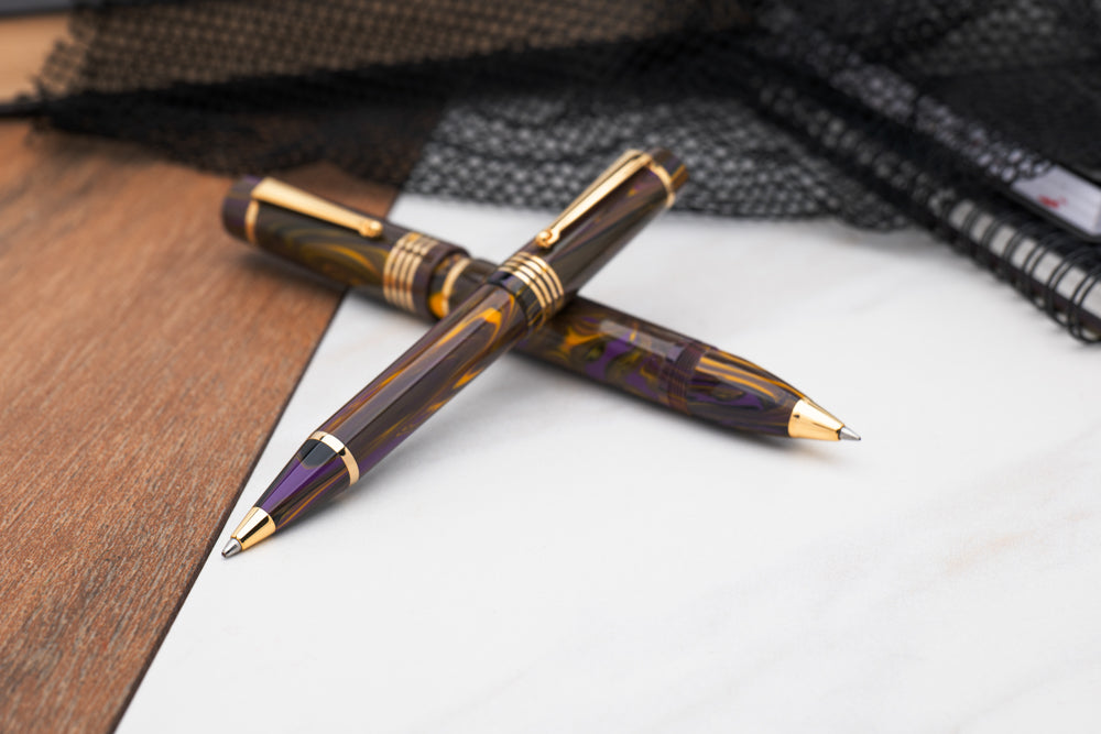 Select from these two unique resin mixtures in rich Iris purple or bright Marigold yellows and greens. The rollerball is a liquid ink joy. Select refills in three points sizes and a rainbow of colors.