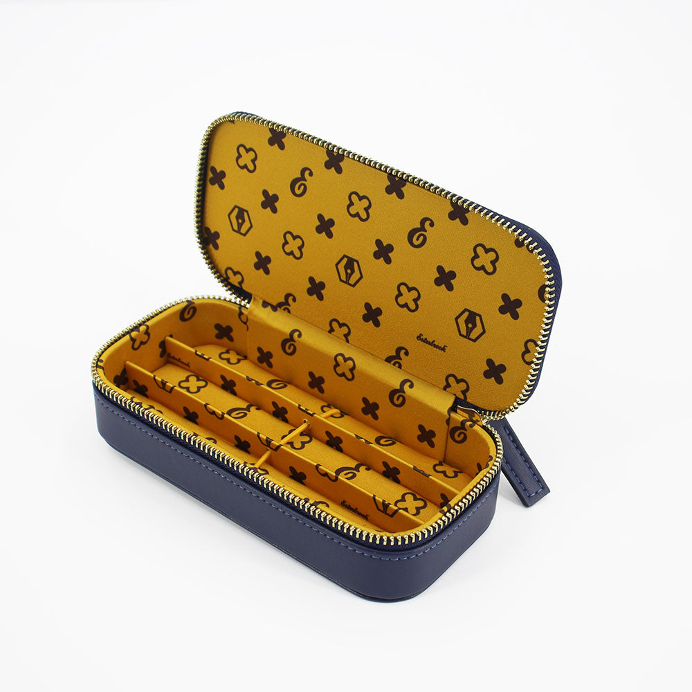 Esterbrook paired supple Dandelion Blue leatherette with matching stitching and then a fabric lined the interior with their signature Esterbrook Eternity image.