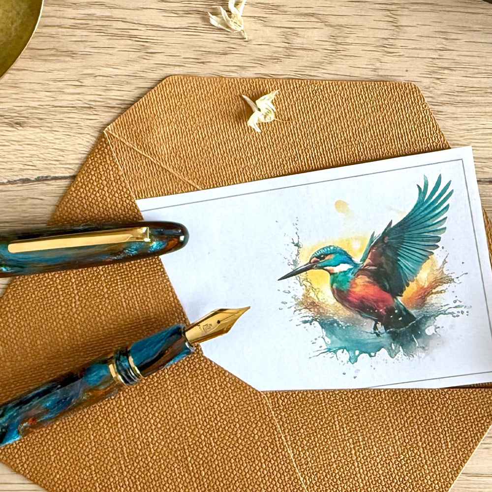 From the iridescent resin body to the painted converter and engraved nib, every element of the Kingfisher Edition has been thoughtfully considered. This collection embodies the ethos of Kachofugetsu, celebrating the beauty of nature and the timeless pleasure of writing.