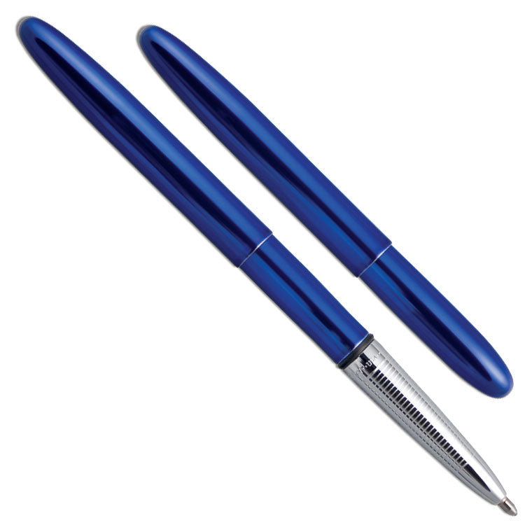 A proponent of the scientific method, Paul Fisher introduced his chrome Bullet Pen in 1948. His innovative thinking led to the development of the Space Pen in the 1960s. With its pressurized ink cartridge, it could write upside down, under water, through grease and in zero-gravity vacuum of outer space. Since its introduction, the Space Pen has been on board every American and Russian space mission. Choose your Bullet Space Pen from a wide variety of colors. All these lacquer models engrave beautifully. Order extra pressurized refills, also available in a wide range of colors. Pocket clip available separately.