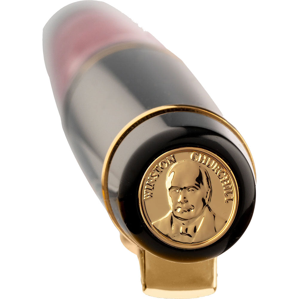 A gold-plated embossed coin featuring Churchill’s portrait sits atop each pen’s cap. A gold-plated clip and band enhance the elegance of this very special pen.