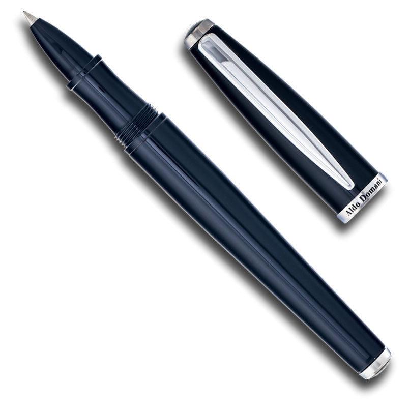 The Monteverde Aldo Domani liquid ink writing rollerball pen fits a standard sized refill available from many manufacturers in three point sizes and a wealth of colors. If given as a gift, it allows the recipient to easily locate their favorite refill that writes just the way they like. The screw on cap and body are covered in shiny stately black, warm green or deep blue and trimmed with chrome. A simple, stately look at an affordable price. Order a few for unexpected gift-giving occasions.