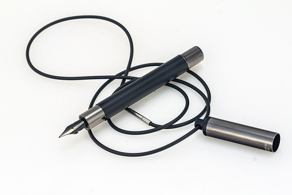 Never ask yourself that question again with this comfortable magnetic capped Ritma. Ritma is revered for its functional magnetic closure. Remove the lanyard if you want to take it along in your pocket! The fountain is available in extra-fine through broad silver nibs and the Omniflex nib in gunmetal, as shown above.