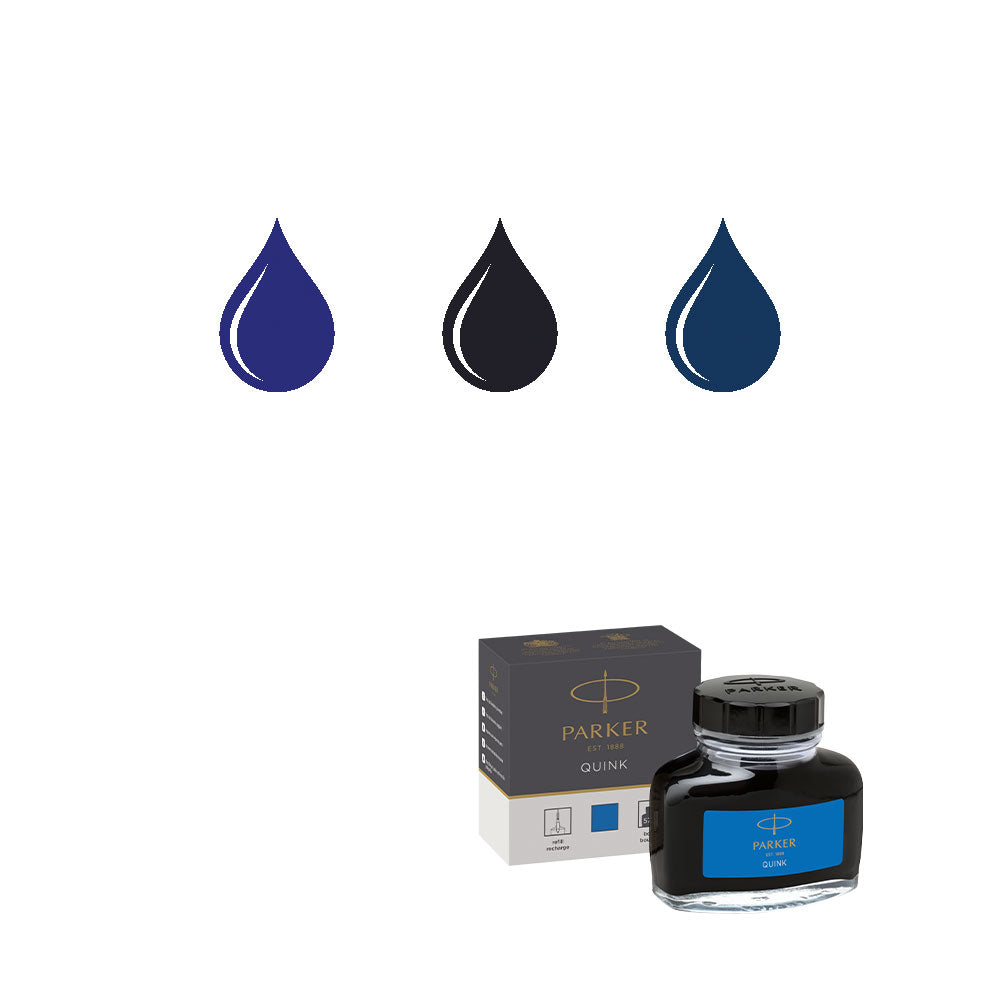Discover the authentic writing pleasure of Parker ink bottles. Select from black, blue/black or washable blue in 2 ounce bottles. A great value, a great ink!