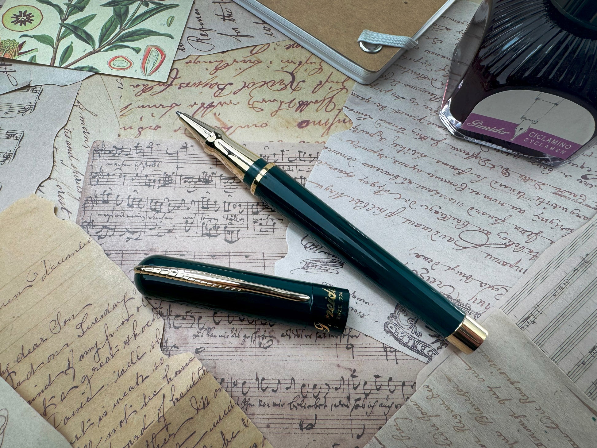 Crafted in the brand’s signature deep green color, Pineider’s distinctive Serpentine Green, Avatar Anniversary showcases every single component Avatar is known for, from the gold finishes to the band decorated with the Pineider logo. Also notice the refined detail of the crest on the end cap, all these details display the mastery and craftsmanship of the brand.