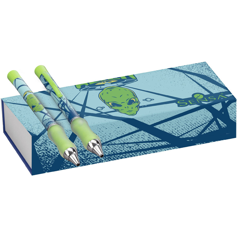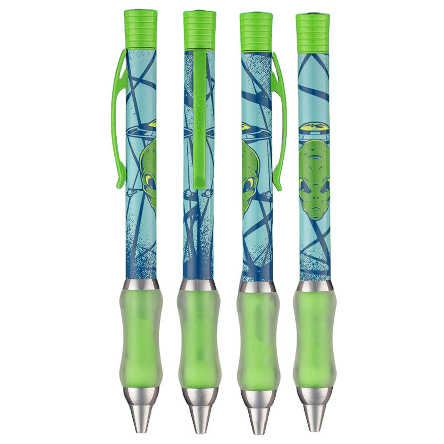 The Sensa Space Alien Limited Edition ballpoint features an exclusive vintage inspired art print which depicts the classic green alien image popularized during the 1950’s. This unique pen has added features which include a space alien green clip and grip section which further enhances the fun theme.