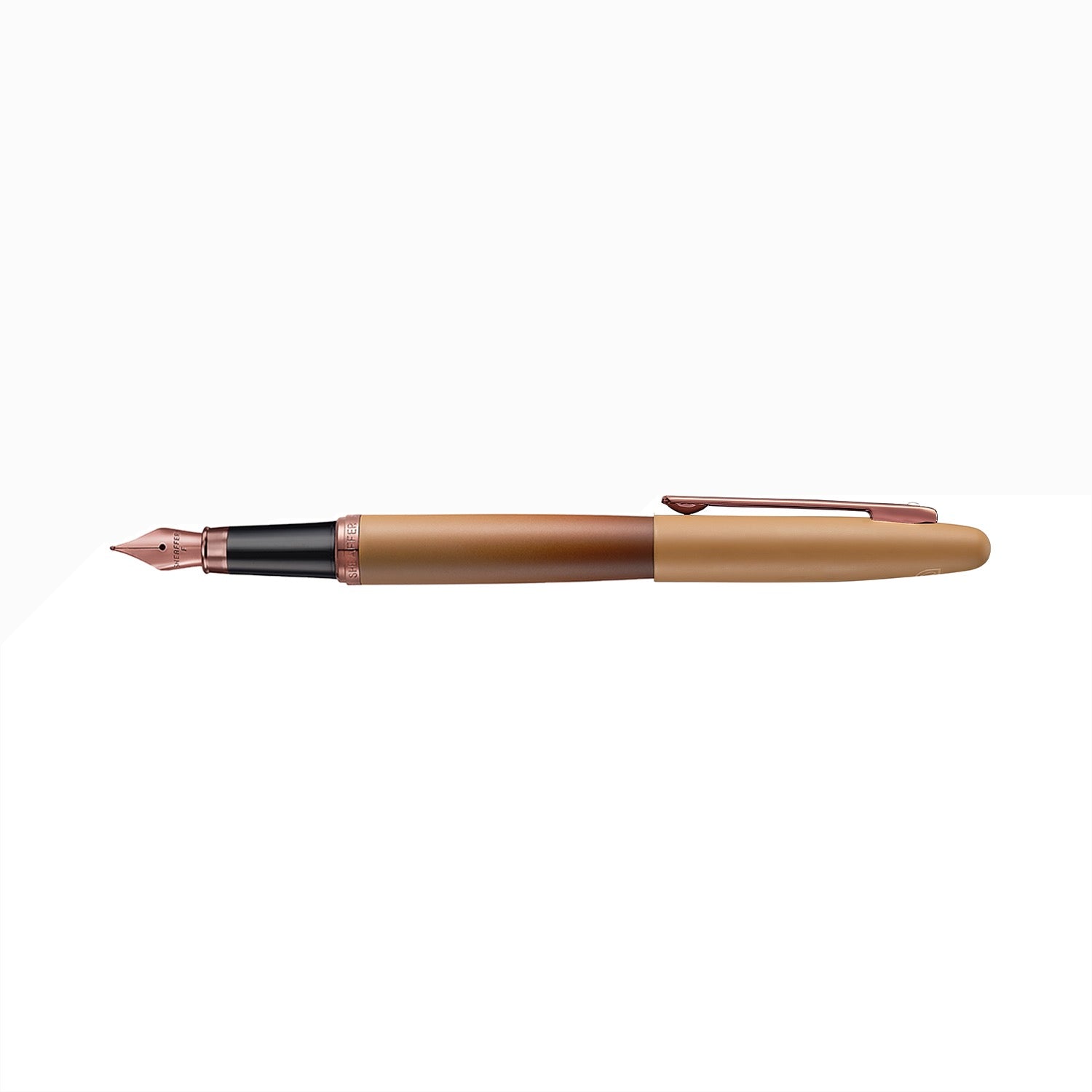 The trim is PVD coated in regal brown for durability. The fountain pen’s nib is also beautifully matched to the trim color. Filling is via cartridge or the included converter.
