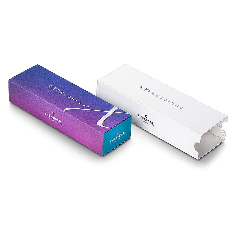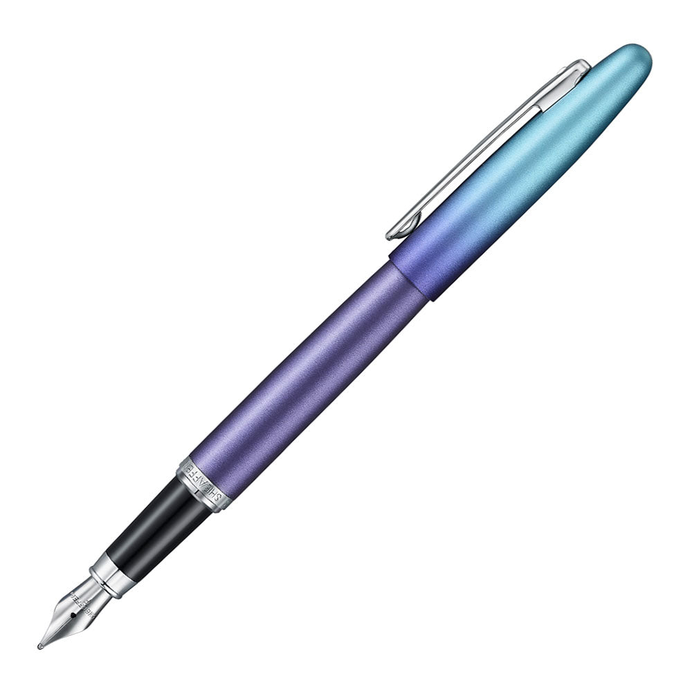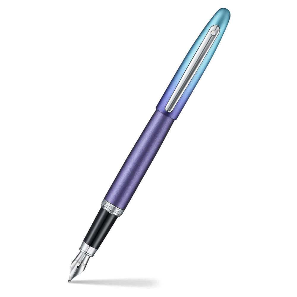 Designed for those who write boldly and live vividly, Expressions introduces a fresh, unapologetic look to the Sheaffer range. The VFM features fountain pens, rollerballs, and ballpoints in modern gradient finishes—This VFM is seen in Blue & Purple gradient. It has chrome-plated trim, a durable brass body, and Sheaffer’s trusted writing performance. Each pen comes in a premium, plastic-free gift box made from FSC-certified paper.