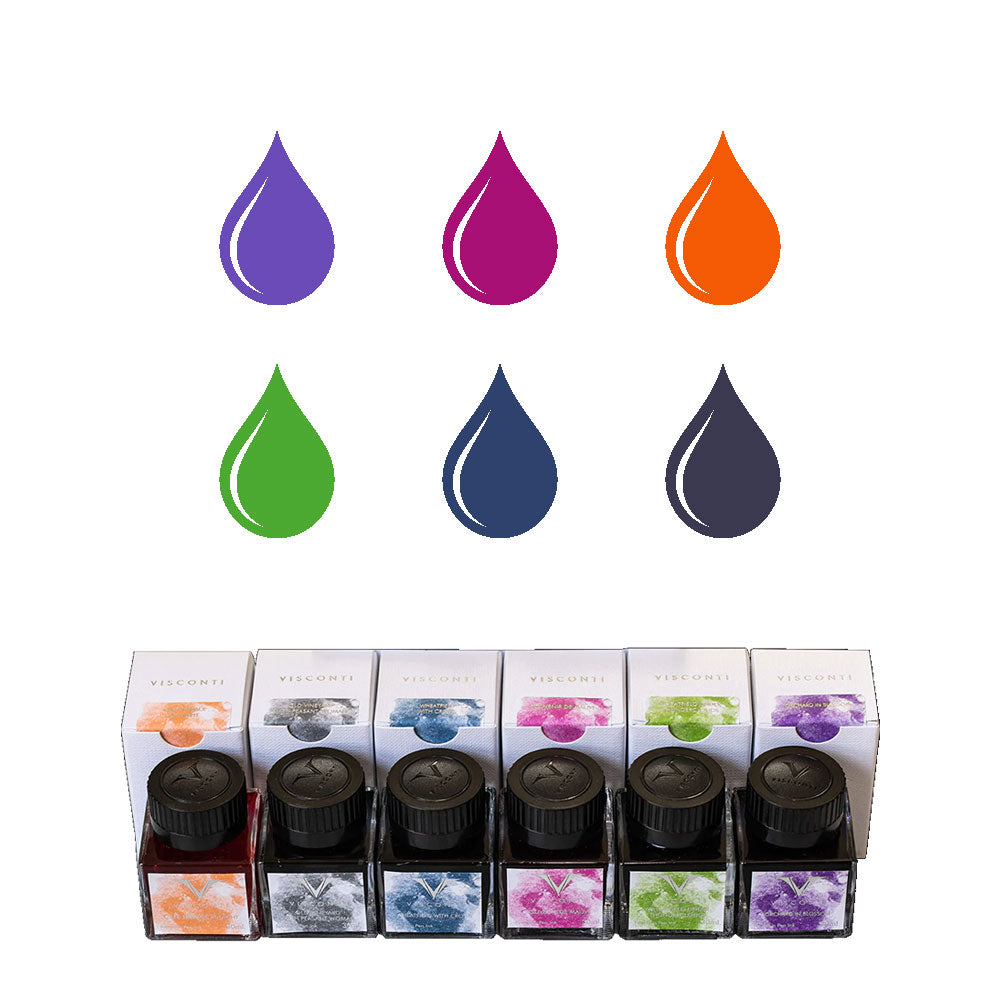 Visconti has matched each of its prominent van Gogh versions with an ink color which emulates the Master’s paintings. Choose from each color individually or select the entire Set of all six colors. Each bottles contains 30ml of ink and features a wide open top for filling your pens.