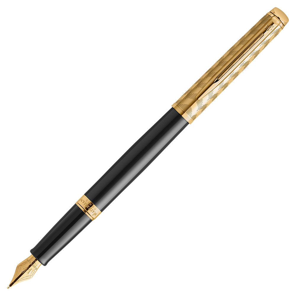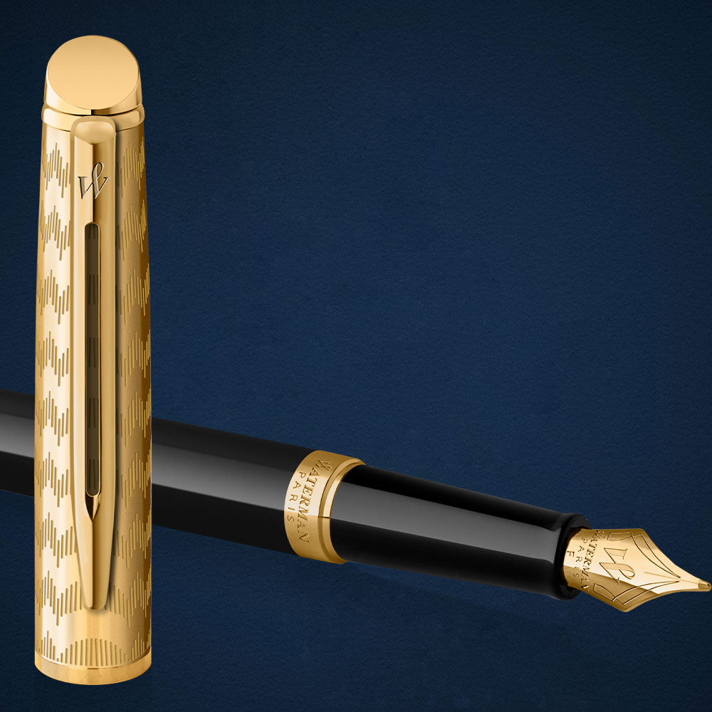The grand opera has inspired audiences for centuries; now it's the turn of the exclusive Waterman Opera Collection. The Hémisphère's elegant, slim shape and the intense black lacquer of its barrel perfectly complement the exquisite, gold-coated cap with its engraved heritage pattern, reflecting the ornate artistry of the opera. The gold-coated, stainless steel medium fountain pen nib (cartridge or bottle filled) features the classic looped W Waterman design, enhancing the pen's sophisticated elegance.