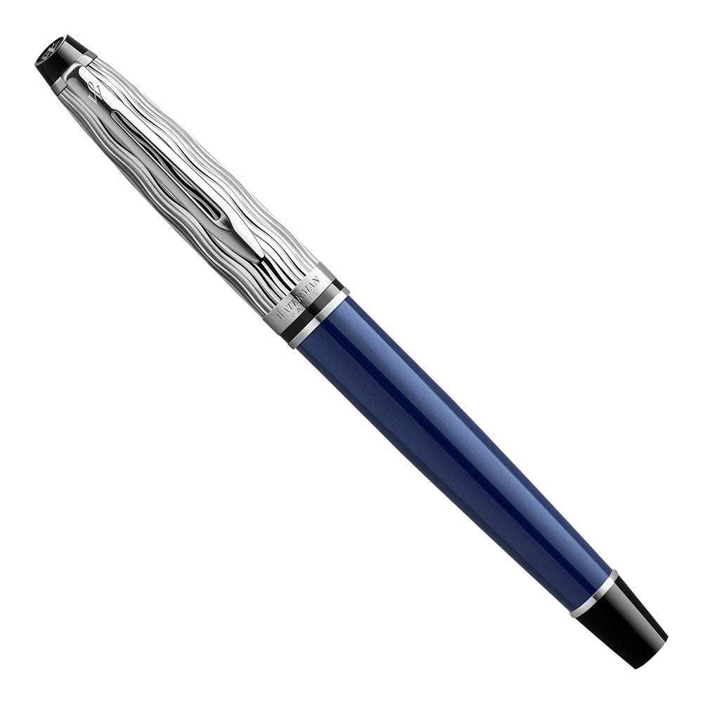 A symbol of ambition and success, the L’Essence du Bleu Expert rollerball pen is finished in a vibrant, deep blue lacquer with Waterman’s signature wave pattern chiseled into the metal cap. The skillfully constructed rollerball nib unites the tradition of liquid ink with ultimate comfort and convenience.